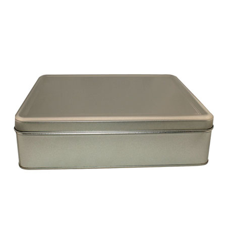 caja de lata plata, blanco las casillas rectangulares