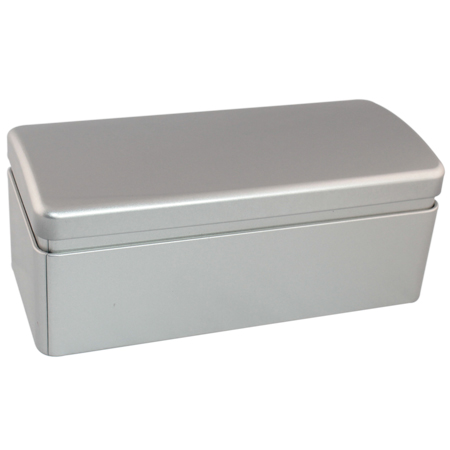 caja de lata de plata vacía