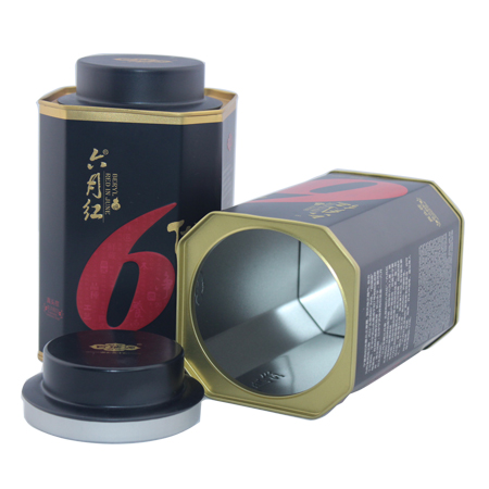 lata de té polígono puede, tapa redonda té lata